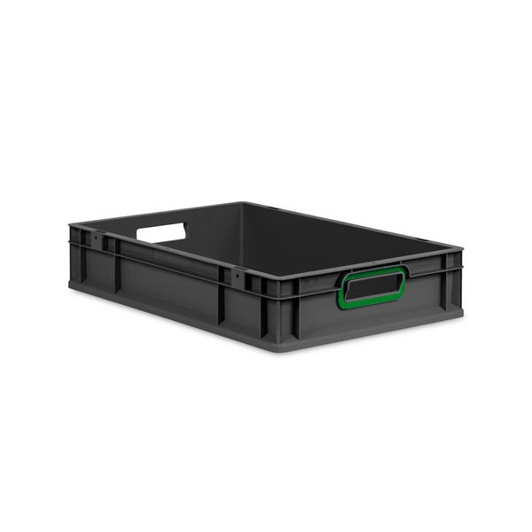 Eurobox NextGen Color, HxBxT 12x40x60cm, 23 Liter, Griffe grün offen, Schwarz, Eurobehälter, Transportbox, Transportbehälter, Stapelbehälter