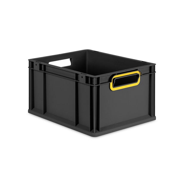 Eurobox NextGen Color, HxBxT 22x30x40cm, 20 Liter, Griffe gelb offen, Schwarz, Eurobehälter, Transportbox, Transportbehälter, Stapelbehälter
