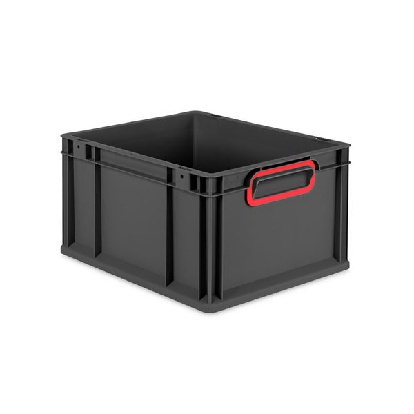 Eurobox NextGen Color, HxBxT 22x30x40cm, 20 Liter, Griffe rot geschlossen, Schwarz, Eurobehälter, Transportbox, Transportbehälter, Stapelbehälter