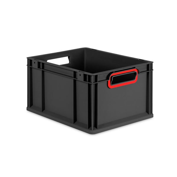 Eurobox NextGen Color, HxBxT 22x30x40cm, 20 Liter, Griffe rot offen, Schwarz, Eurobehälter, Transportbox, Transportbehälter, Stapelbehälter