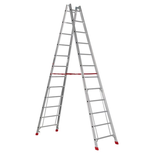 Sprossen mit 32mm waagerechter Auftrittfläche für sicheren und ermüdungsfreien Stand, Sprossenabstand 280mmGeschweißte Sprossenprofile mit ProfilierungStranggepresste Sprossenprofile mit starker Profilierung für verbesserte RutschhemmungHolme aus stranggepressten Aluminiumprofilen mit Sicke für sehr hohe StabilitätSprossenwinkel zur Holmaussteifung ab Größe 2x7Premium-Gummifuß sorgt mit mehr Auflagefläche für einen noch sicheren StandDurchgehend geriffelte Sprossen und rutschfeste Gummifüsse sorgen für sicheren und bequemen Stand