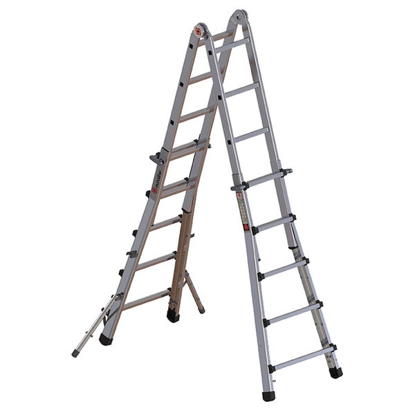 Aluminium Klappleiter, flexibel einsetzbar mit Standverbreiterung für normgerechtes Arbeiten nach EN 131-4. Von Sprosse zu Sprosse bis fast auf doppelte Höhe ausziehbar Arretierung über robuste Stellgriffe Als eingeschobene Stehleiter beim Transport sehr kompakt Einfache und absolut sichere Höhenverstellung Gelenkarretierung durch nach außen Ziehen des Gelenkdeckels komfortabel lösen Sicherheitsgelenke rasten selbstständig ein Leichtgängige Mechanik