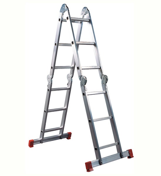 Hinweis Als Arbeitsbühne nur mit Plattform verwenden Vielzweckleiter aus Aluminium mit 6 Sicherheitsgelenken aus verzinktem Stahl, die in jeder Position automatisch einrasten 5 Verwendungen: Stehleiter Anlegeleiter mit Wandabstützung Arbeitsbühne Treppenarbeitsbühne 2 Traversen für hochfeste Standfestigkeit Große rutschfeste Traversenschuhe Kompakte Maße für guten Transport Auf allen vier Seiten geriffelte quadratische Sprossen 30x30 mm Sprossenzahl: 4x3 Leiterlänge zusammengeklappt: 1 m Senkrechte Höhe: 3,71 m Leiterlänge als Stehleiter H1: 1,8 m Arbeitshöhe als Anlegeleiter A: 4,61 m Arbeitshöhe als Stehleiter A1: 2,7 m Gewicht: 12,8 kg Zubehör: Plattform (29,5x161 cm) Artikelnummer H6/P