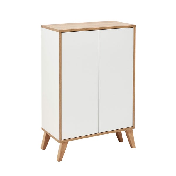 Mit FINN zieht der moderne Skandinavien-Stil ins Bad ein. Das Set besteht aus zwei Komponenten: Der zweitürige Doppel-Midischrank wird zerlegt und mit einer einfachen Montageanleitung geliefert. Bei den Dekoren gibt es die Auswahl zwischen klassischem Weiß und Schwarz sowie Ast-Eiche-Optik. Die vier schräg stehenden Holzfüße verleihen dem Schrank einen schicken Retro-Look. Besonders praktisch: Die grifflose Push-to-Open-Technik sorgt für ein einfaches Öffnen der Türen. Korpus und Front sind aus feuchtigkeitsresistenten Materialien, stabil und pflegeleicht. Das Set mit einer Breite von 60 cm passt auch hervorragend in kleine Badezimmer und Gäste-WCs.