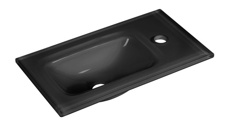 Fackelmann Glas-Waschbecken Gäste-WC Das Fackelmann Waschbecken ist aufgrund seines modernen Designs ein Blickfang für jedes Gäste-WC. Das Becken aus Glas ist in der Farbe Grau erhältlich. Der auffällige Grauton ist ein Highlight in jedem kleinen Badezimmer. Mit den besonders schmalen Maßen passt das Becken optimal für Gäste-WCs und kleine Bäder. Dank der durchdachten Gestaltung kann bei diesem Becken die Armatur sowohl rechts als auch links angebracht werden. Zu dem Waschbecken passen optimal die platzsparenden Mini-Waschtisch-Unterschränke aus den Serien KARA, MILANO und A-VERO mit einer Breite von 44 cm. Schöne Bäder heißen FACKELMANN » Inhalt: 1 x Waschbecken