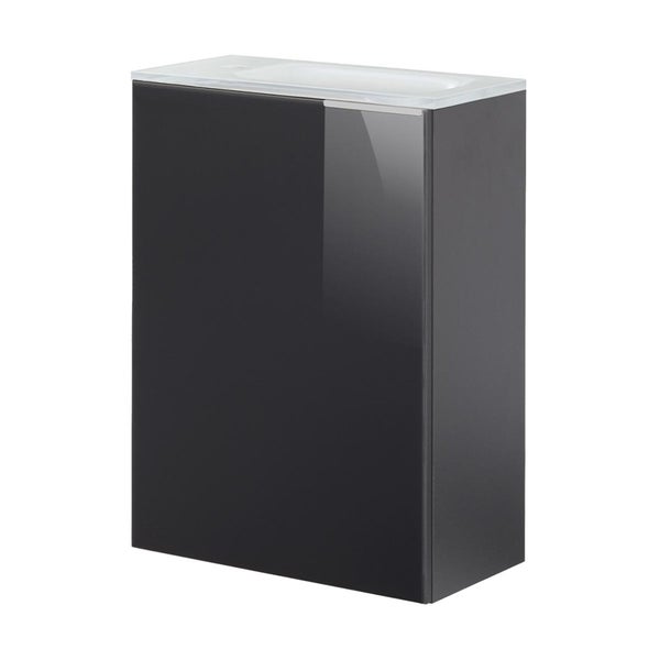 Fackelmann KARA Gäste-WC Set 3 Teile – Waschtischunterschrank mit Glasfront in Anthrazit mit Waschbecken aus Glas in Weiß – SBC Waschbecken beleuchtet – Türanschlag links – 45 cm breit