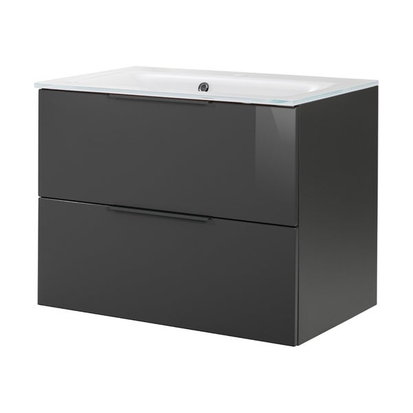FACKELMANN LUNA Badmöbel Set / Waschbecken mit Unterschrank / Maße: (B x H x T): ca. 80 x 61 x 49 cm / Waschtisch aus Glas / 2 Schubladen / Farbe Becken: Weiß / Farbe Schrank: Schwarz/Anthrazit