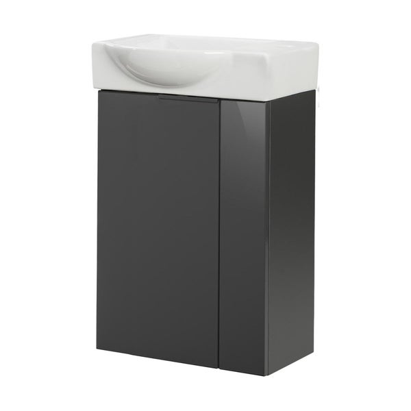 Fackelmann LUNA Gäste-WC Set 2 Teile – Waschtischunterschrank in Anthrazit mit Waschbecken aus Keramik – SBC Waschbeckenunterschrank schmal – Türanschlag links – Hahnloch rechts – 45 cm breit