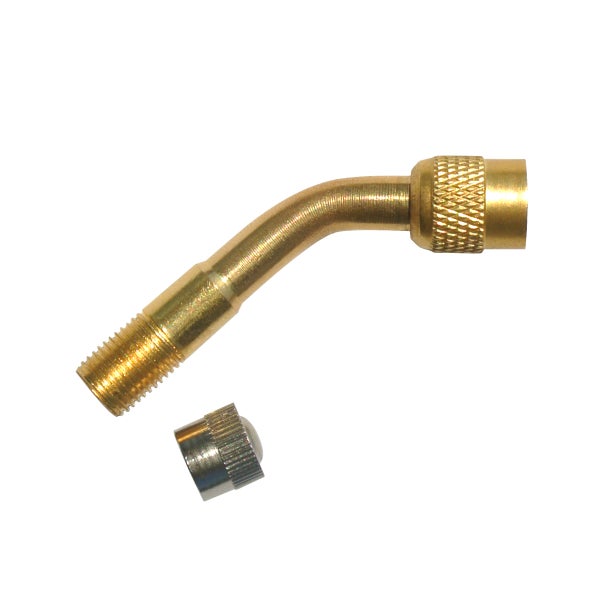 Mit der FAIRAIR Ventilverlängerung 135 Grad aus Messing sind Sie beim Befüllen Ihrer Reifen für alle Eventualitäten gerüstet! Der kleine Ventiladapter mit 135-Grad-Biegung kommt immer dann zum Einsatz, wenn Sie an Ihr Auto-, Motorrad oder Lkw-Ventil nur schwer herankommen. Da die Ventilverlängerung drehbar ist, haben Sie beim Arbeiten mit komplexerer Bereifung, wie beispielsweise Doppelbereifung, alle Möglichkeiten, den Adapter am Ventil anzusetzen. Nach Gebrauch schützt die Ventilkappe vor Verschmutzung. Mit der FAIRAIR Ventilverlängerung erhalten Sie einen vielseitig einsetzbaren Ventiladapter – für den einfachen und flexiblen Einsatz mit einem passenden Reifenfüller. FAIRAIR – Einfach. Druckluft.