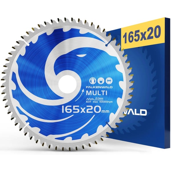 FALKENWALD ® Sägeblatt 165x20 60 Zähne - Ideal für Holz, Metall & Alu - Multi Kreissägeblatt 165x20 - Kompatibel mit Tauchsäge & Kreissäge von Bosch & Makita - 165x20 Sägeblatt