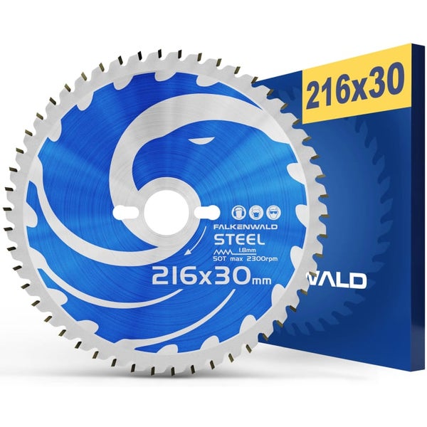 FALKENWALD® Sägeblatt 216x30 Stahl 50 Zähne - Kreissägeblatt 216x30 Stahl - Kompatibel mit Metabo KGS 216 M, Bosch GCM 8 SDE, PCM 8S Kappsäge - HM Kreissägeblatt 216 x 30 mm