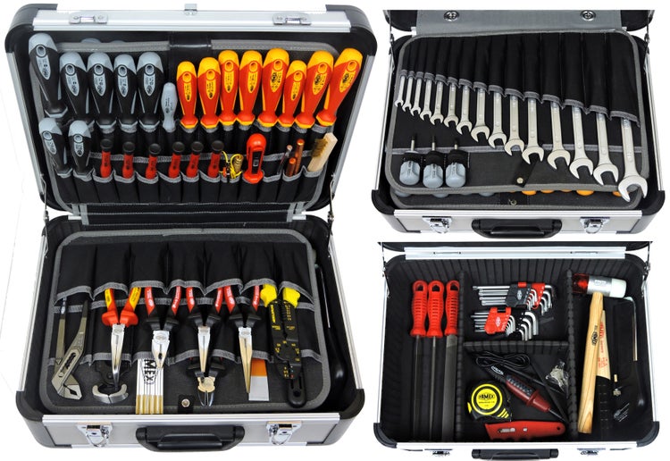 Optimieren Sie Ihre Arbeitsleistung mit unserem erstklassigen Werkzeugkoffer FAMEX 418-88, ausgestattet mit einem Profi Werkzeug-Set in höchster Qualität. Der Großteil der Werkzeuge ist aus deutscher Produktion. Verlassen Sie sich auf robuste Materialien und präzise Verarbeitung, um jede Aufgabe mühelos zu meistern. Dieser Werkzeugkoffer bietet nicht nur erstklassige Leistung, sondern ist auch Ihr verlässlicher Partner für eine langlebige und nachhaltige Werkzeugausstattung.