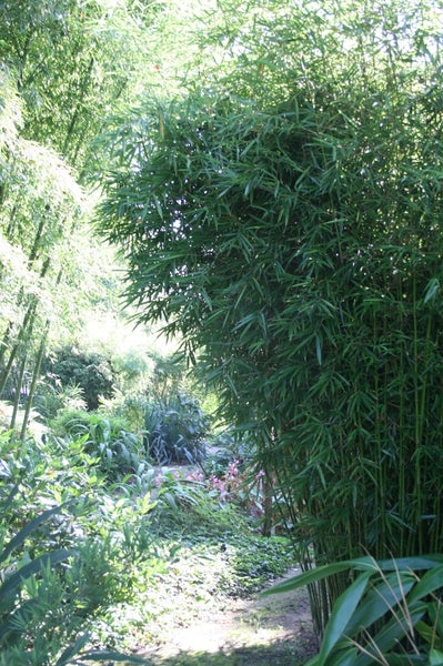 Fargesia Campbell ist durch seinen aufrechten Wuchs und der guten Schnittverträglichkeit zur Pflanzung von mittelhohen bis hohen Bambushecken geeignet. Dieser Bambus erreicht unter optimalen Standortbedingungen eine Endhöhe von 4 - 5 Metern und bietet dadurch einen tollen Sicht,- Lärm- und Windschutz. Aber auch als Solitärpflanze in Einzelstellung oder in einem ausreichend großen Kübel versprüht dieser Bambus asiatischen Charme. Fargesia robusta Campbell kann im Garten unschöne Ecken kaschieren und sich dort wunderschön entfalten. Mit zwei Austrieben im Jahr gehört Campbell zu den stärker wachsenden Fargesien. Der Boden sollte feucht, humos und nährstoffreich sein. Am wohlsten fühlt sich der Schirmbambus an einem sonnigen bis halbschattigen Platz. Der Schirmbambus Campbell hält Temperaturen bis zu -25 Grad Celsius aus. Die jungen Triebe der Pflanze sollten vor Frost geschützt werden.