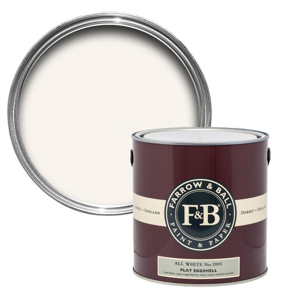 Farrow & Ball Flat Eggshell - Robuster Lack für Innen mit 20% Glanz 2,5 Liter All White No,2005