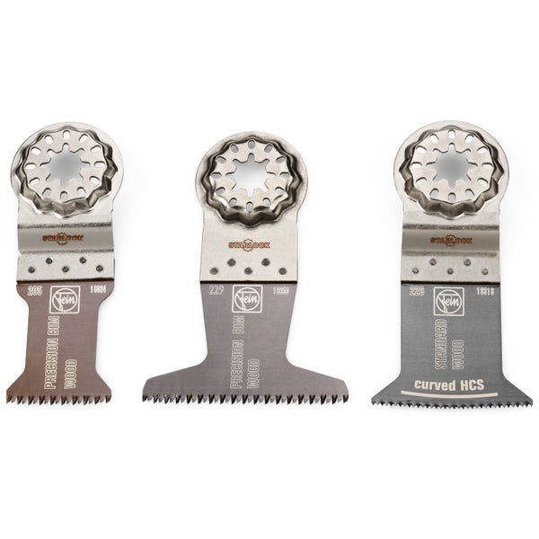 3 E-Cut Tauchsägeblätter für präzise Sägearbeiten in Holzwerkstoffe. Passend für alle FEIN Multitools sowie alle anderen gängigen Multitools mit Starlock-Aufnahme.