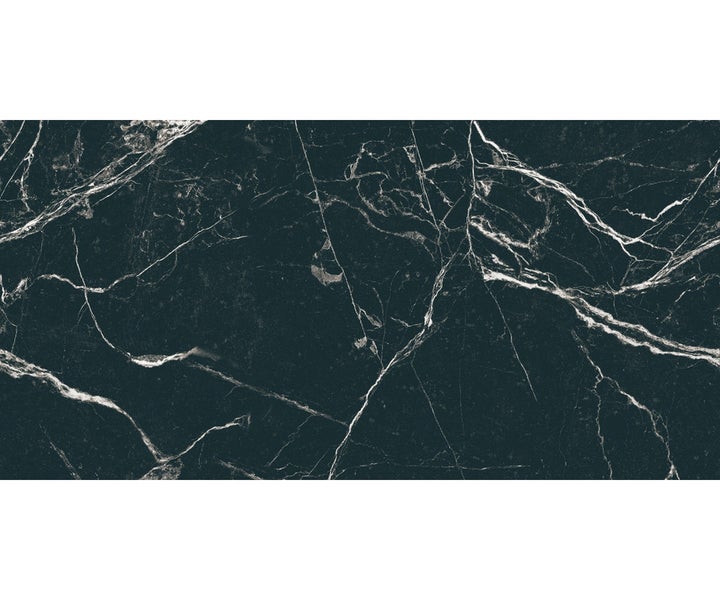 Feinsteinzeug Wand- und Bodenfliese Premium Marble Statuario Anthrazit 60 x 120 x 0,9 cm glasiert poliert rektifiziert
