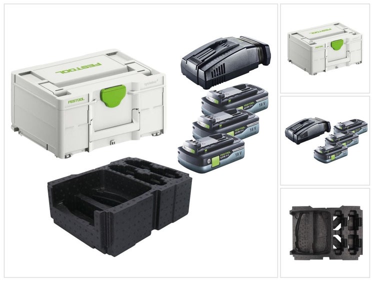 Festool Energie Set 3x BP 18 Li 4,0 Ah HPC-ASI Akkupack 18V 4,0 Ah HighPower ( 3x 205034 ) + SCA 16 Schnellladegerät 10,8 V - 18 V ( 576953 ) + Systainer