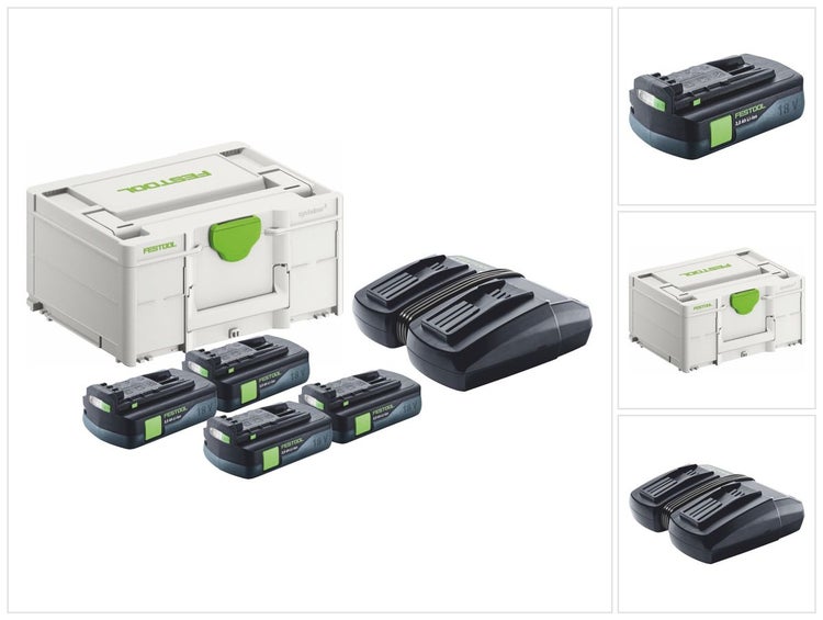 Festool Energie Set 4x BP 18 Li 3,0 C Akku 18 V 3,0 Ah / 3000 mAh Li-Ion ( 4x 577658 ) + TCL 6 DUO Doppel Ladegerät ( 577017 ) + Systainer