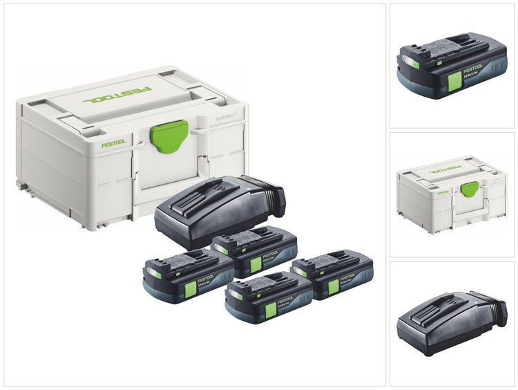 Festool Energie Set 4x BP 18 Li 3,0 C Akku 18 V 3,0 Ah / 3000 mAh Li-Ion ( 4x 577658 ) + TCL 6 Ladegerät ( 201135 ) + Systainer