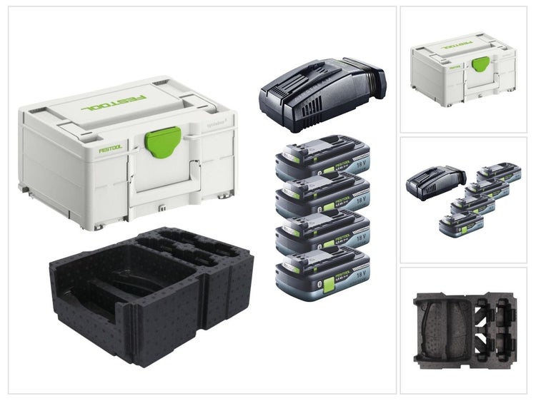 Festool Energie Set 4x BP 18 Li 4,0 Ah HPC-ASI Akkupack 18V 4,0 Ah HighPower ( 4x 205034 ) + SCA 16 Schnellladegerät 10,8 V - 18 V ( 576953 ) + Systainer