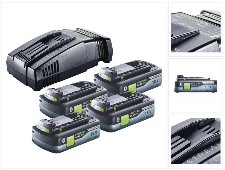 Festool Energie Set 4x BP 18 Li 4,0 Ah HPC-ASI Akkupack 18V 4,0 Ah HighPower ( 4x 205034 ) + SCA 16 Schnellladegerät 10,8 V - 18 V ( 576953 )