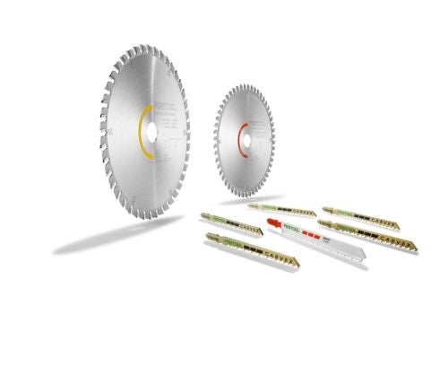 - Kreissägeblatt WOOD FINE CUT für furnierte und beschichtete Platten, Vollholz-Querschnitte, MDF – feiner Schnitt|Kreissägeblatt LAMINATE/HPL für Laminat, beschichtete Platten, Acrylglas, Melaminharzplatten und Mineralwerkstoffe|Stichsägeblatt WOOD UNIVERSAL für alle relevanten Holzanwendungen|Stichsägeblatt PLASTICS LAMINATE für Laminat und melaminharzgebundene Platten (z. B. Trespa®)