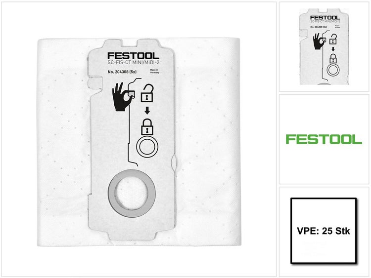 Festool SELFCLEAN Filtersack SC-FIS-CT MINI/MIDI-2/25 ( 5x 204308 ) für CT MINI und CT MIDI ab Baujahr 2019 25 Stück