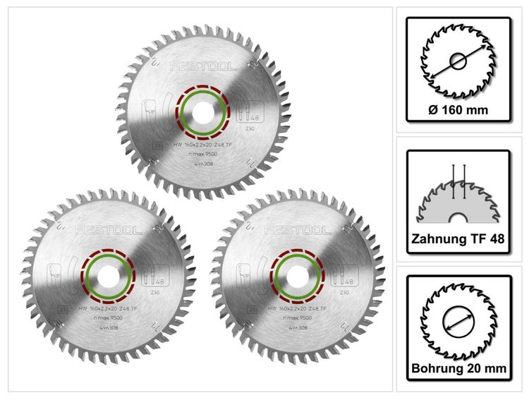 - 3x Spezial Festool Kreissägeblatt HW 160 x 2,2 x 20 mm TF48 ( 496308 )