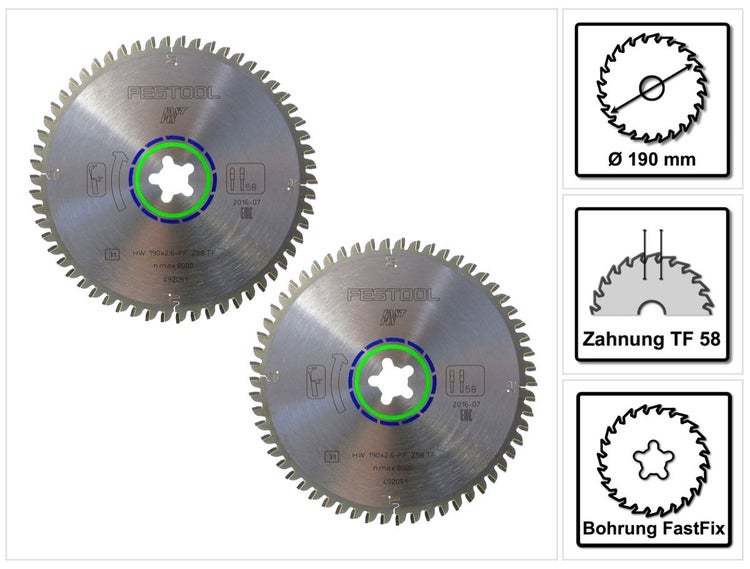 Festool Spezial Kreissägeblatt Set TF58 2x 190 x 2,6 mm 190 mm ( 2x 492051 ) 58 Zähne
