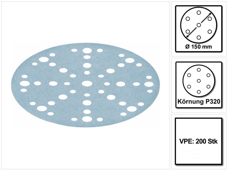Festool STF D150/48 Schleifscheiben Granat P320 150 mm 200 Stk. ( 2x 575170 ) für RO 150, ES 150, ETS 150, ETS EC 150, LEX 150, WTS 150, HSK-D 150