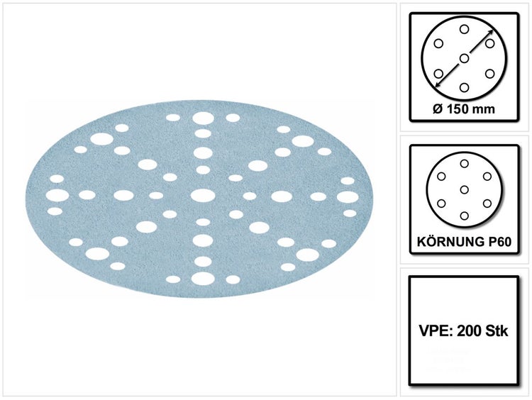 - 200x Festool STF D150/48 Schleifscheiben Granat P60
