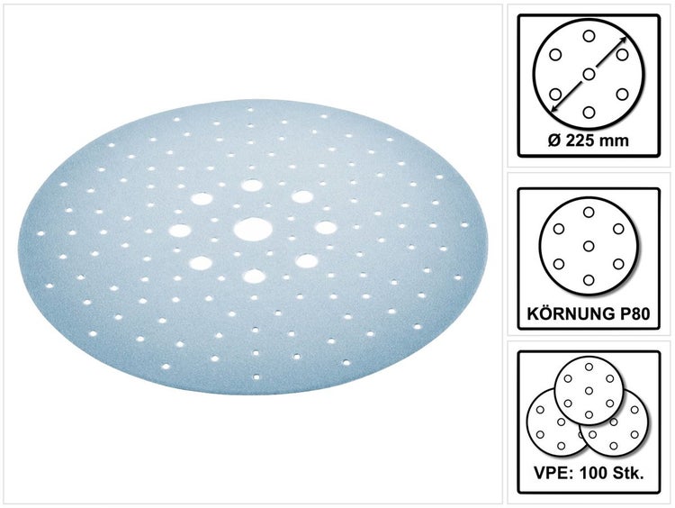 Festool STF D225/128 P80 GR/25 Schleifscheibe P80 225 mm 100 Stk. ( 4x 205655 ) für Langhalsschleifer PLANEX LHS 2 225 EQ(I), PLANEX 225 EQ, PLANEX LHS-E 225 easy