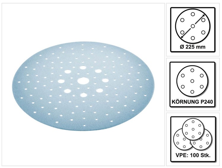 - 100x Festool STF D225/128 Schleifscheibe Granat P240 225 mm