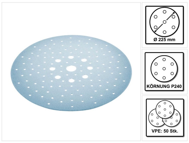 Festool STF D225/128 Schleifscheibe Granat P240 225 mm 50 Stk. ( 2x 205663 ) für Langhalsschleifer PLANEX