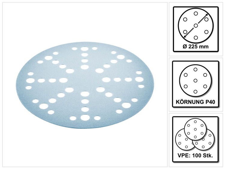- 100x Festool STF D225/128 Schleifscheibe Granat P40 225 mm
