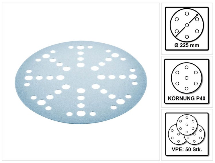 Festool STF D225/128 Schleifscheibe Granat P40 225 mm 50 Stk. ( 2x 205653 ) für Langhalsschleifer PLANEX