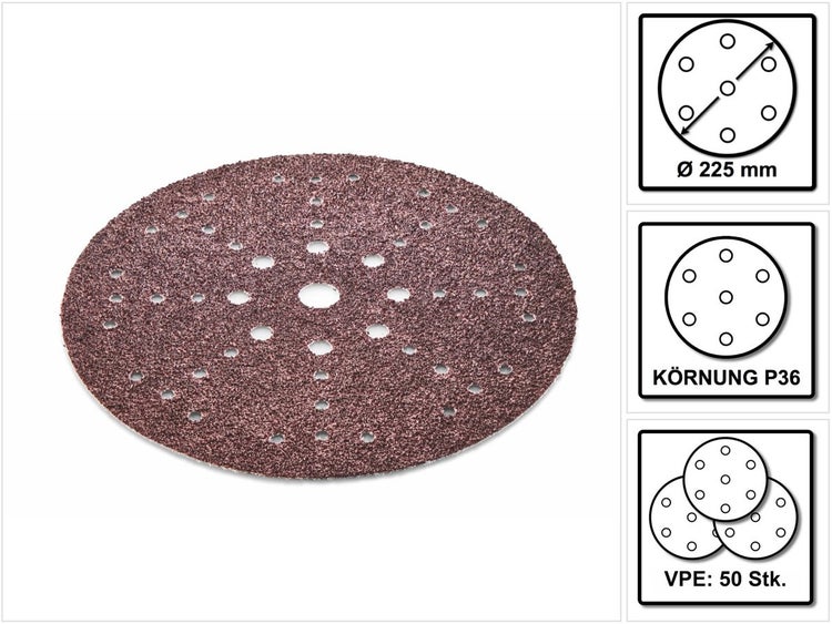 Festool STF D225/48 Schleifscheibe Saphir P36 225 mm 50 Stk. ( 2x 205652 ) für Langhalsschleifer PLANEX - Nachfolger von 495175