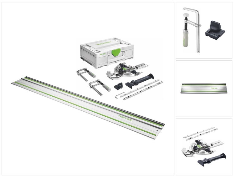 Festool bietet hier mit SYS3 M 137 FS/2 ein praktisches Zubehörset mit allen Hilfsmitteln um die Führungsschiene noch besser nutzen zu können. Mit dem FS-WA Winkelanschlag haben wir hier ein hochwertiges Werkzeug für genaueste Winkelschnitte im Bereich von +60º bis -60º. Der FS/2-AW ist lässt sich einfach auf eine Führungsschiene aufstecken und verhindert, dass sich Schläuche und Kabel verhaken. Durch die FSV/2 Verbindungsstücke lassen sich zwei Führungsschienen einfach und stabil miteinander verbinden. Die Schraubzwingen eignen sich hervorragend um die Führungsschienen an der Unterlage zu fixieren. Der FS-RSP Rückschlagstopp dient als hintere und vordere Stopp Position auf einer FS/2 Führungsschiene. Die Werkzeuge kommen in einem stabilen Systainer SYS3 M 137, welcher eine komfortable Transportmöglichkeit für das enthaltene Werkzeug bietet. Festool ist ein Premiumhersteller für Elektrowerkzeuge, der sich vor allem durch seine lange Tradition und seine sehr hohe Verarbeitungsqualität auszeichnet.