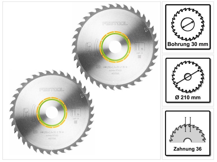 Festool Universal Sägeblatt W36 210 x 2,4 x 30 mm 2 Stk. ( 2x 493198 ) für Tauchsäge TS 75