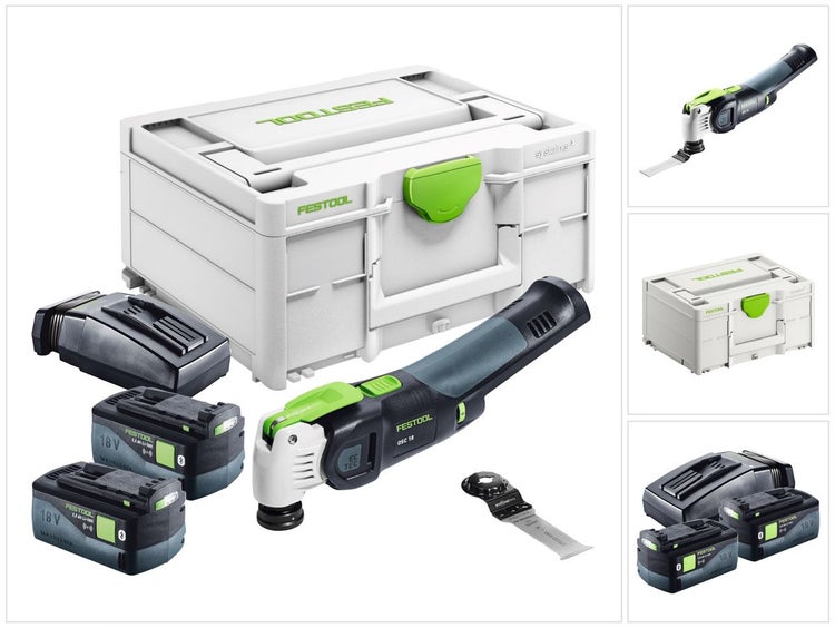 Festool VECTURO OSC 18 E-Basic Akku Oszillierer 18 V Starlock Max Brushless + 2x Akku 5,0 Ah + Ladegerät + Systainer