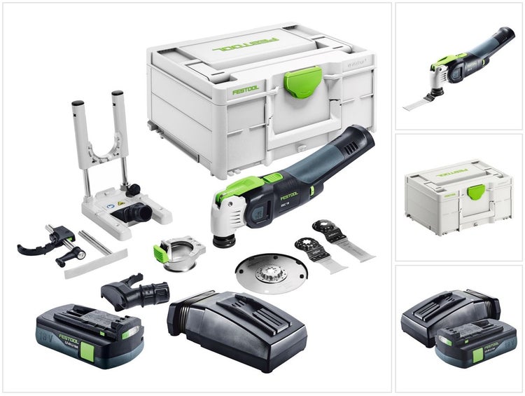 Festool VECTURO OSC 18 E-Basic Set Akku Oszillierer 18 V Starlock Max Brushless + 1x Akku 3,0 Ah + Ladegerät + 7 tlg. Zubehör Set + Systainer