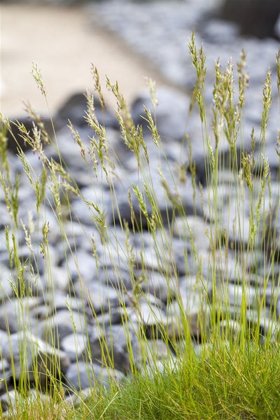 Festuca mairei, der Atlas-Schwingel, ist ein attraktives Ziergras mit immergrünem, dicht horstigem Wuchs und einer eleganten, halbkugeligen Silhouette. Die schmalen, fest strukturierten Blätter zeigen ein edles blaugrün bis olivgrün mit goldenem Schimmer und bringen ganzjährig Ruhe und Struktur in Beete und Rabatten. Im Frühsommer erscheinen feine, strohgoldene Rispen, die sich anmutig über den Blattkörper legen und dem Erscheinungsbild zusätzliche Leichtigkeit geben, ohne aufdringlich zu wirken. Als langlebige Gartenstaude überzeugt Festuca mairei durch eine klar aufgebaute Form, die sich hervorragend mit Stauden und Blütensträuchern in sonnigen Kies- und Steingärten, im Präriebeet oder im modernen Vorgarten kombinieren lässt.