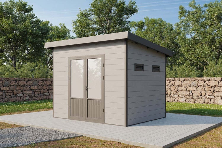 - Finnhaus Wolff WPC Gerätehaus Terra 3024 28 Anthrazit/Hellgrau als Bausatz, inkl. Fundamentrahmen