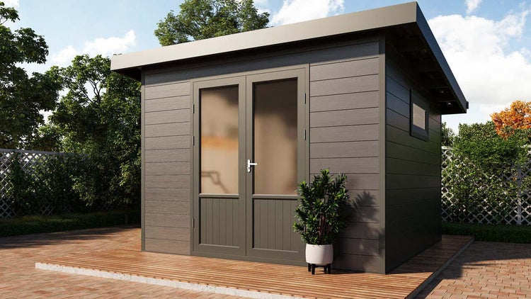 - Finnhaus Wolff WPC Gerätehaus Terra 3030 28 Anthrazit/Hellgrau als Bausatz, inkl. Fundamentrahmen und Ausstellfenster