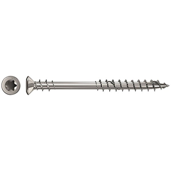 Die fischer Power-Fast Terrassenschraube A2 FPF-ST A2P ist eine Schraube zur Befestigung von Terrassendielen auf Holzunterkonstruktionen.Das Power-Fast Gewinde sorgt für einen schnellen Anbiss und die zusätzlichen Schaftfräsrippen senken den Eindrehwiederstand, wodurch kraft- und akkuschonend gearbeitet werden kann. Die Power-Fast Schraube aus Edelstahl A2 mit Teilgewinde, kleinem Senkkopf und Innenstern-Aufnahme kann bei einer großen Zahl von Terrassenhölzern verwendet werden. Beispielsweise Accoya, Bangkirai, Douglasie, Eiche, IPE, Itauba, Kapur, Lärche, Massaranduba und Robinie. Um ein optimales Ergebnis zu erhalten, wird grundsätzlich das Vorbohren und Vorsenken empfohlen. Vorteile Die Terrassenschraube aus Edelstahl A2 bietet eine hohe Witterungs- und Gerbsäurebeständigkeit. Diese Eigenschaften erhöhen die Dauerhaftigkeit der Schraube. Das Spezialgewinde reicht bis in die Schraubenspitze und sorgt für einen schnellen Anbiss. Dies erleichtert die Verarbeitung spürbar. Das Fixiergewinde im Unterkopfbereich dient zur separaten Fixierung der Diele. Die Schaftfräsrippen senken den Eindrehwiderstand und sorgen so für kraft- und akkuschonendes Arbeiten. Die flache Kopfgeometrie ermöglicht auch bei randnahen Befestigungen einen exakten und splitterfreien Oberflächenabschluss. Anwendungen Verschrauben von Terrassenbeplankungen auf Holz-Unterkonstruktionen Baustoffe Vollholzplatten Tropenhölzer (vorgebohrt) Harthölzer (vorgebohrt) Thermohölzer Weichhölzer Und viele weitere Holzwerkstoffe Funktionsweise Um ein optimales Ergebnis zu erhalten, wird grundsätzlich das Vorbohren und Vorsenken empfohlen.