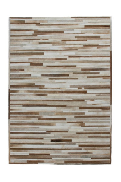 Der schöne Lederteppich ist ein Naturteppich, der etwas ganz Besonderes in Ihre vier Wände bringt: ein edles Ambiente mit einmaligem Style. Das patchworkartige Design aus verschiedenen natürlichen Felltönen ergibt ein harmonisches Gesamtbild im Streifen-Look. Das handgefertigte Unikat wird aus ausgewähltem Material feinster Qualität hergestellt. Natürliche Unregelmäßigkeiten von bis zu 30 % in Farbe, Struktur und Maß unterstreichen die Originalität und die Einzigartigkeit eines jeden Lederteppichs. Das natürliche Fell kann nach einiger Zeit und bei hoher Beanspruchung gegebenenfalls an Haaren verlieren. Dies ist dem Naturprodukt geschuldet und kein Produktionsfehler.