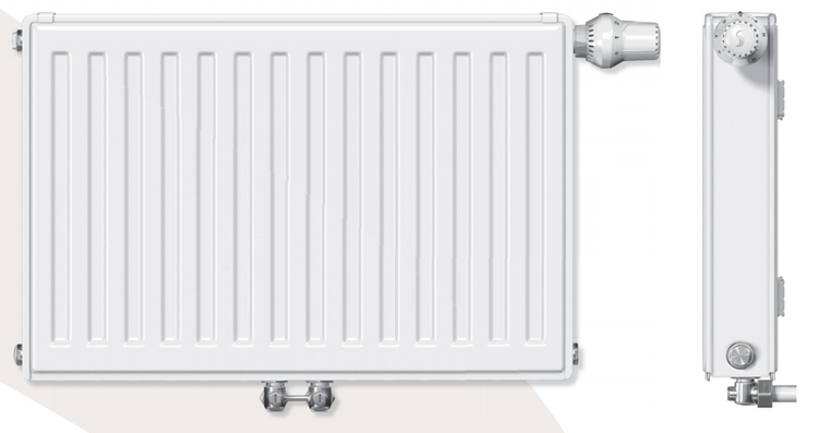 Flachheizkörper Profil T6 Typ 22 VM 600x1120 mm RAL901 Mittelanschluss