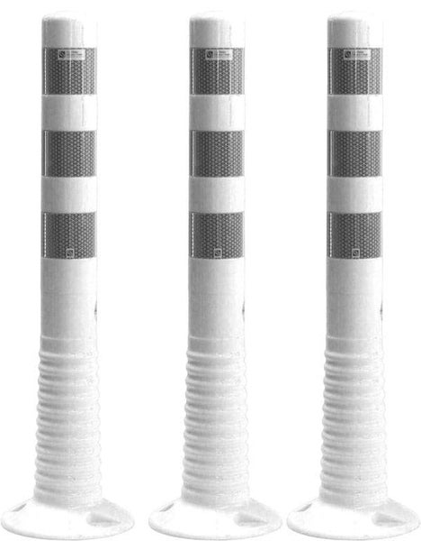 Flexible weiße Poller Absperrpfosten 75 cm überfahrbar sichtbar sicher mit Reflexfolie / Reflexfolie weiß (silber) / 3 Pfosten