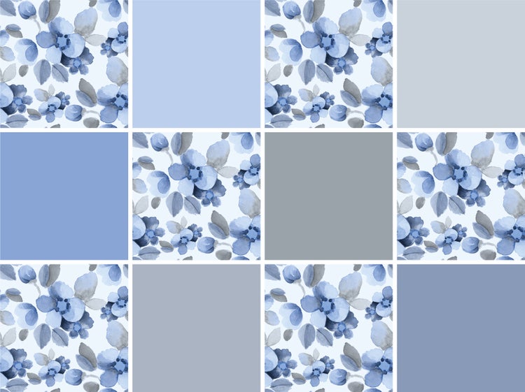 Fliesensticker, Stickerfliesen Pastellfarben Blumen, selbstklebend, bedruckt, ideal für Badezimmer und Küche im 12 Stück a 15x15cm_TS0566