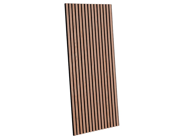 Die Breite der Lamellen beträgt 2,7 cm und der Abstand zwischen den Lamellen liegt bei 1,3 cm, was eine optimale Schallabsorption ermöglicht. Die Plattendicke des Paneels beträgt 2,1 cm, dies gewährleistet eine effektive Schallreduzierung und verbessert die Raumakustik deutlich.